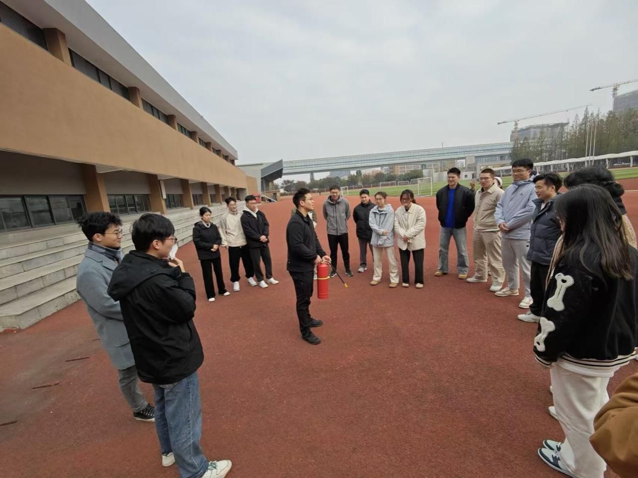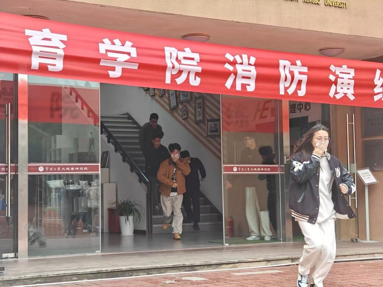 在西区大健康研究院组织了一场消防逃生演练活动,学院学生积极参与其中。