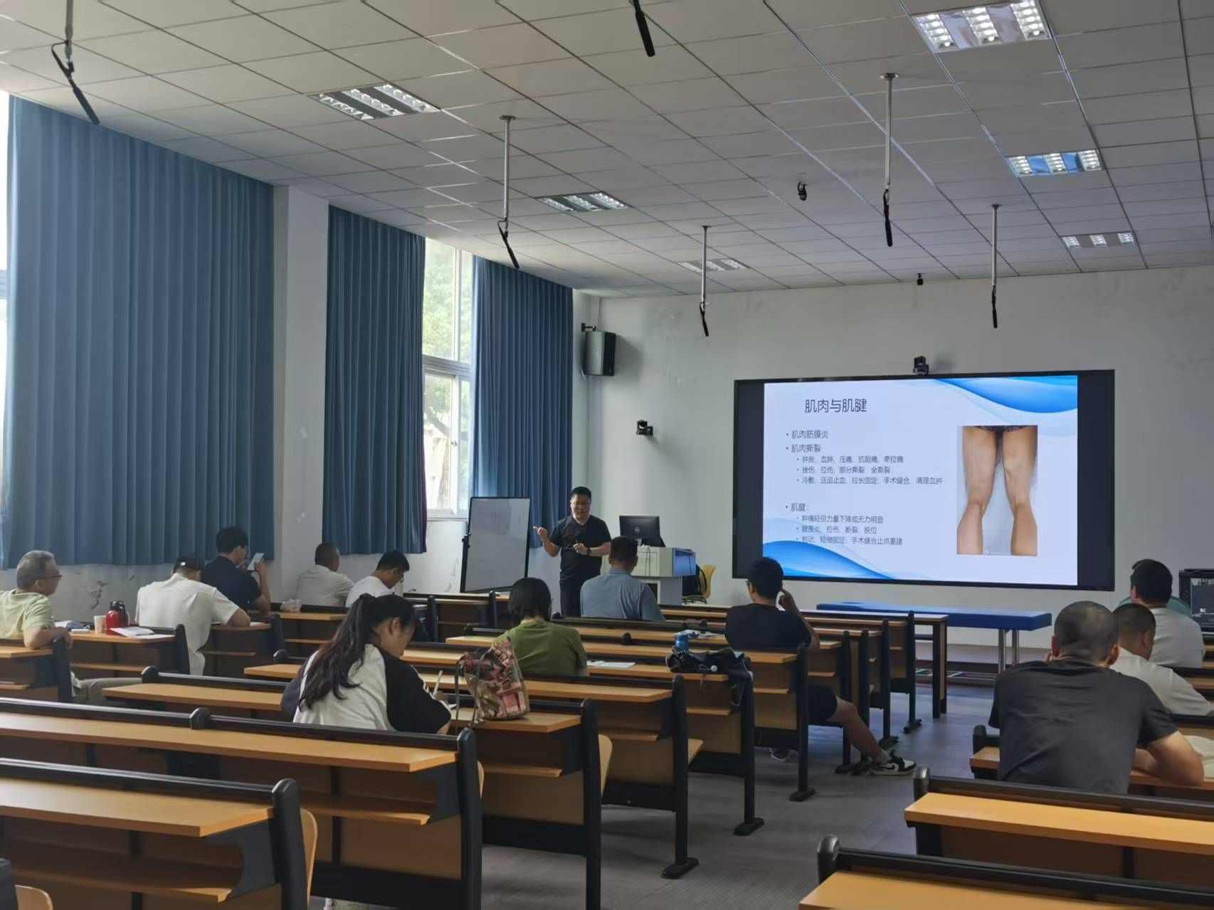 100教室,浙江省体医融合背景下的三大球类运动损伤修复与教学技能创新培训班第一期顺利开班。本期培训班为期12天,面向跨学段,基础学分90分。本次培训旨在提高学员教学技能和实践技能,能够根据医生提供的医疗信息制定并实施体适能测试方案和运动处方,实现真正意义上的体医融合。让学员掌握常见的运动损伤处理和运动防护的必备技能,具备公共突发事件紧急应对能力。