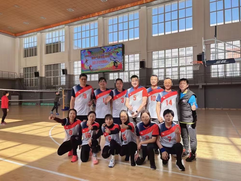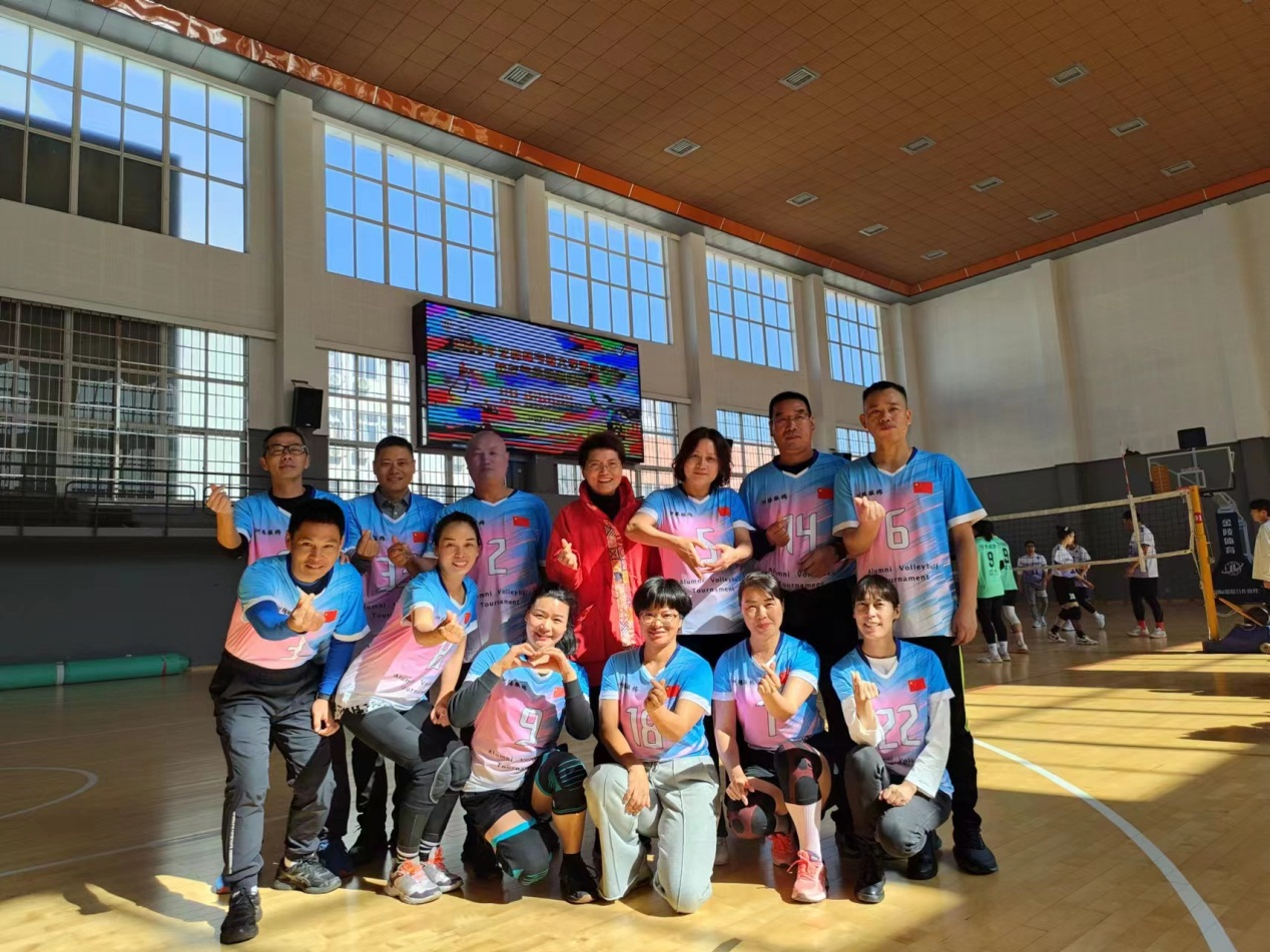 9:00比赛正式开始,各校友代表队英姿飒爽,发球、传球、扣球、拦网……风采不减当年,一招一式都依稀可见年少时的印迹。除了场内球员全力竞技之外,场外的啦啦队也积极投入,助威声、喝彩声此起彼伏,场内场外都精彩无比。