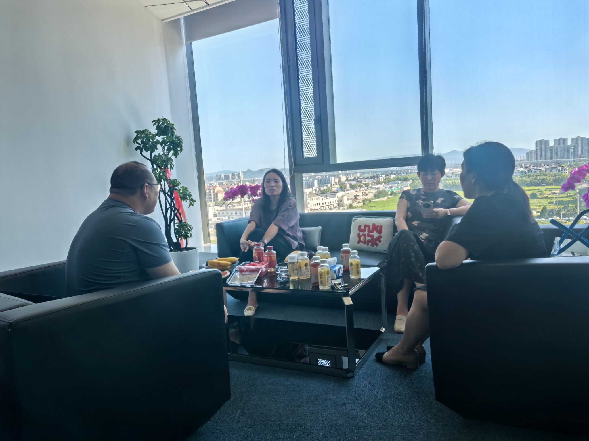 7月3日下午,污污漫画 党委书记童莹娟、党委副书记胡秋丽、学院校友办主任顾慧亚及校乒乓球队教练邵诗蕊一行走访2012级校友耿浩文、现任宁波达麦网络科技有限公司负责人,并就深化校企业合作、加强校友联络等议题展开深入交流。
