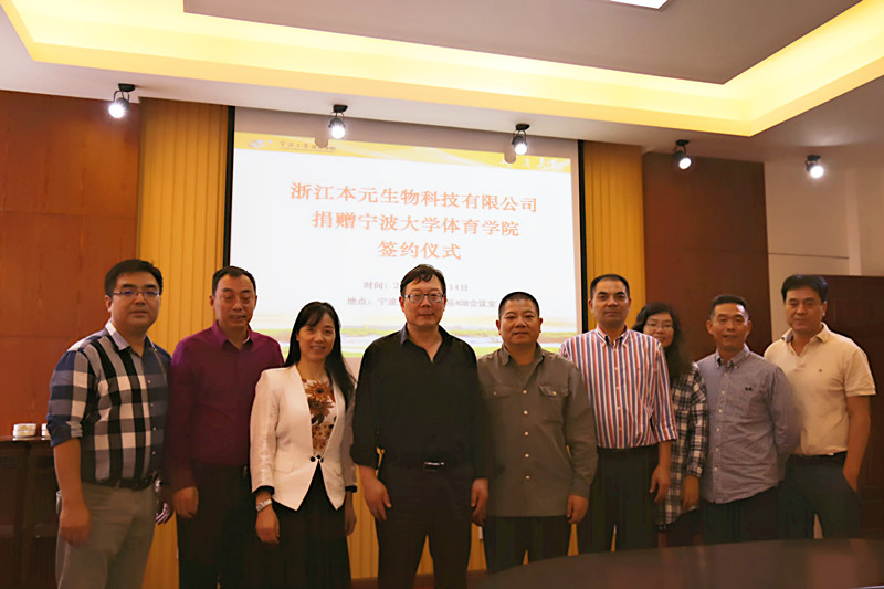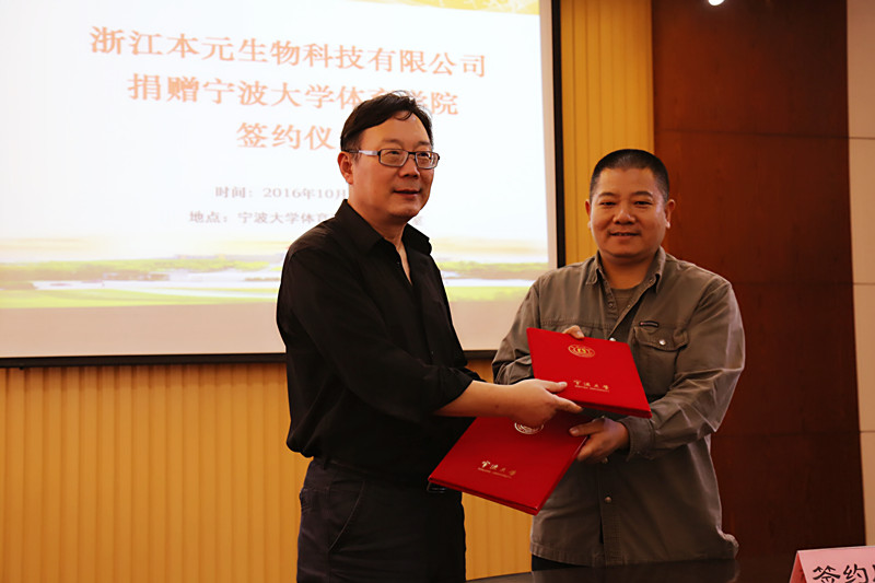 捐赠仪式上,执行院长郑建岳代表学院对徐晖校友和浙江本元生物科技有限公司表示衷心感谢和诚挚敬意,并介绍了学院的发展情况。浙江本元生物科技有限公司董事长徐晖先生表示,作为原宁师院体育系87级学生能够为污污漫画