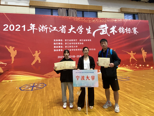 民族传统体育学20级硕士)参与了此次比赛,共报了三个项目:女子丙组自选短器械、男子丙组42式太极剑、女子丙组42式太极剑,两人在三个项目的比赛中均夺得第2名的好成绩。