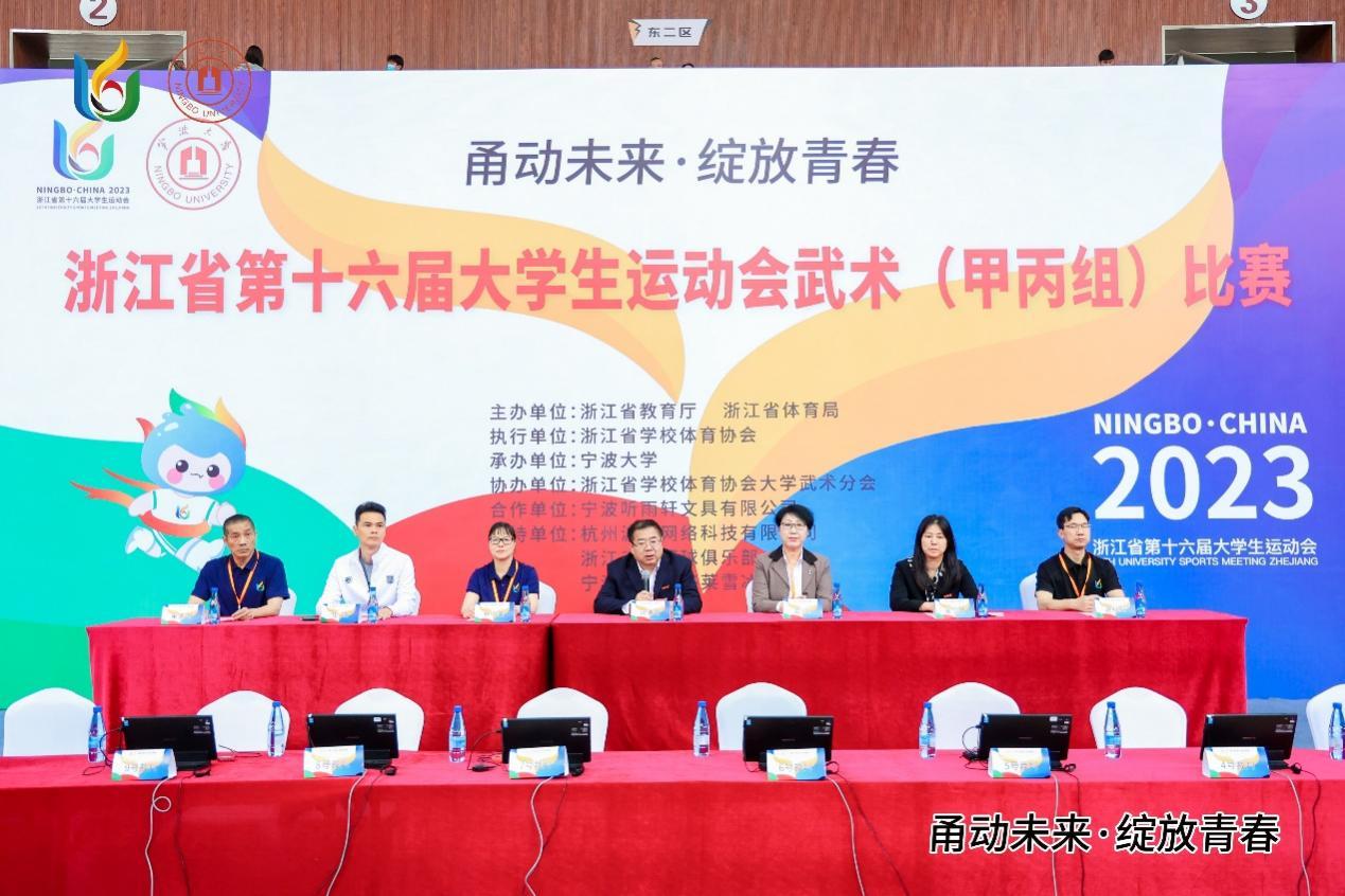 在浙江省学校体育协会常务副秘书长姜丽教授的宣布声中,为期3天的比赛正式启动。本次大赛共设置长拳、南拳、太极拳、剑术、刀术、枪术和棍术7个项目,将产生28块金牌。预祝运动健儿们安全完赛,以饱满的斗志取得骄人的成绩!