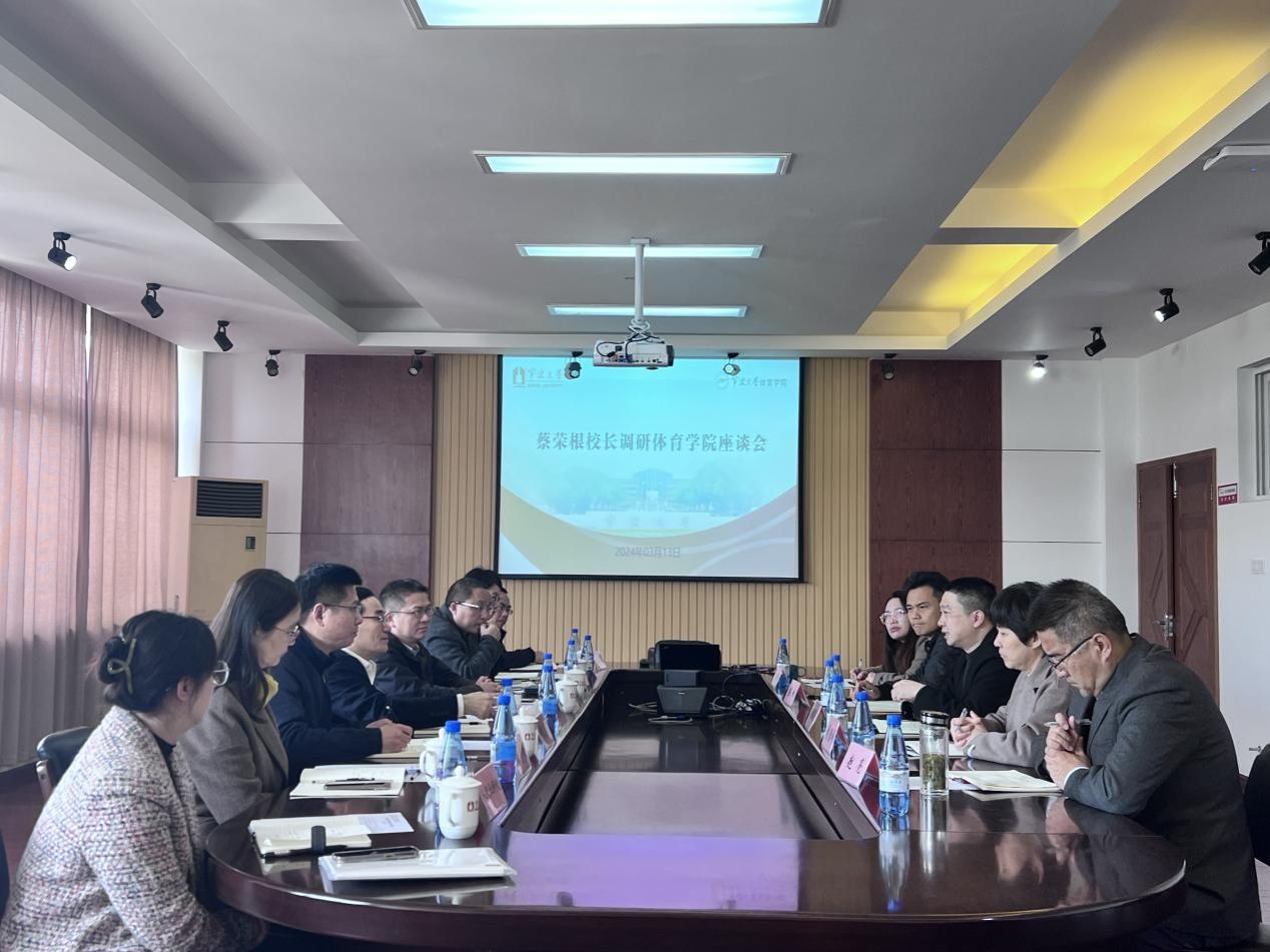 蔡荣根在听取工作汇报后肯定了体育学院在上一轮聘期中的工作,对领导班子团结协作、齐心协力助力学院高质量、稳步发展予以充分肯定,并对学院的未来发展提出了新的期待。他指出,体育学院发展前景光明,目标远大清晰。对学院未来发展,蔡荣根提出了四点建议:一是立足学科发展,集中力量争取在教育部第六轮学科评估中实现重大突破;二是与时俱进,面向国家需求,积极拓展学科融合,为“双一流”学科建设添砖加瓦;三是内培外引并举,做好师资和人才队伍建设,形成合理的人才发展梯队。四是进一步加强学院班子建设,塑造良好的学院氛围,不断提升向心力、战斗力。
