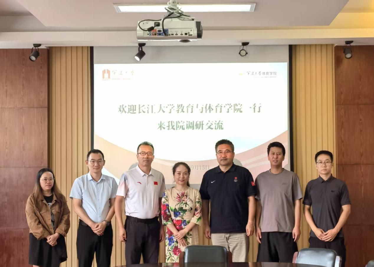副院长任峰,副院长赵亮,党委委员刘维,体育系副主任郭强等出席会议。副院长任峰代表学院对长江大学同仁的到访表示热烈欢迎。双方围绕体育学科建设与人才培养等议题进行了深入探讨。