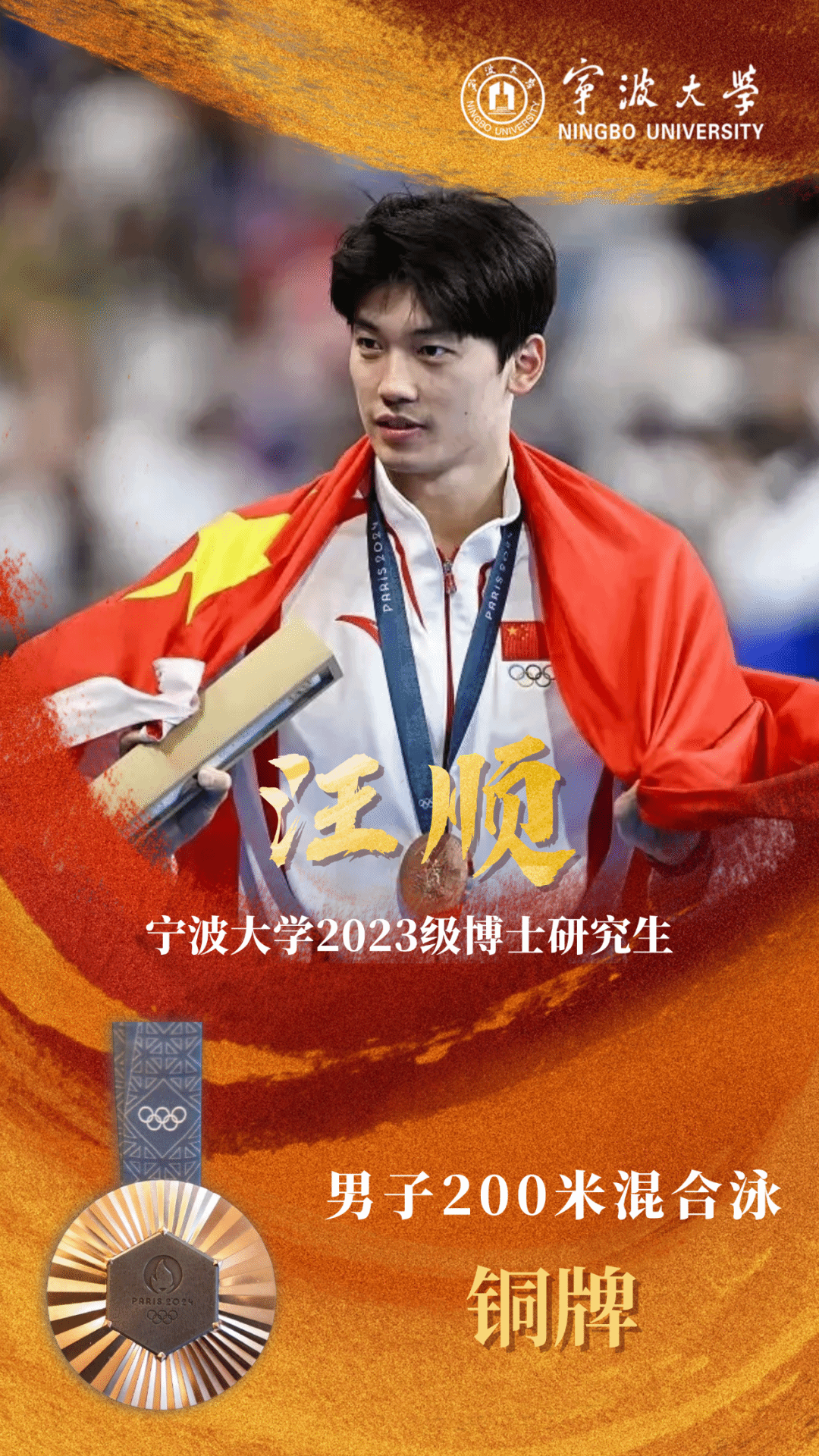 在奥运赛场上取得辉煌成就的五位杰出校友石智勇(举重)、汪顺(游泳)、王昶(羽毛球)、徐诗晓(皮划艇)、曾莹莹(霹雳舞)予以高度表彰,并为他们在体育事业上的持续发展提供有力支持。