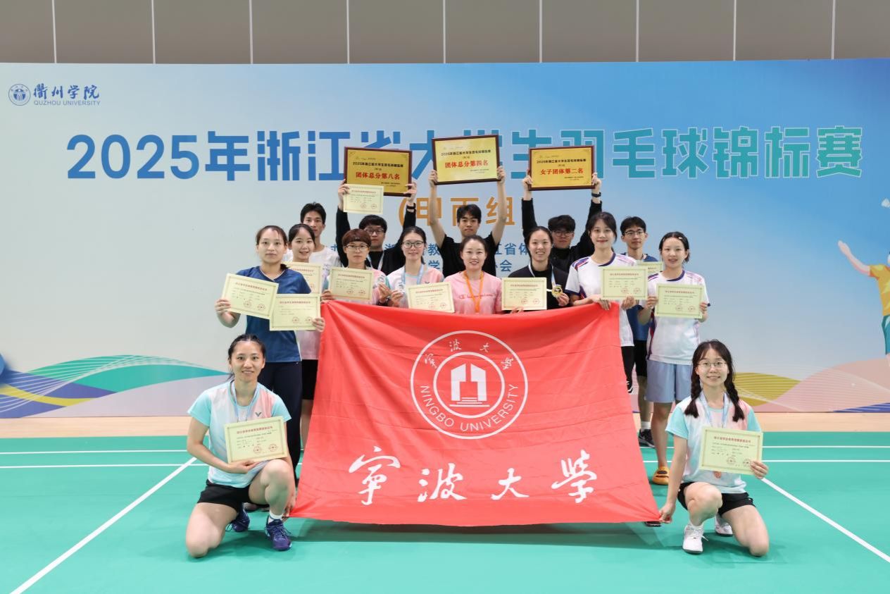 这场赛事由浙江省教育厅、浙江省体育局主办,浙江省学校体育协会大学羽毛球分会协办。来自全省各大高校的羽毛球精英齐聚赛场,在喻林老师的带领下,我校也派出了实力强劲的队伍参与甲、丙组多个项目的激烈角逐,比赛过程中,我校选手们始终保持着高昂的斗志和专注的精神,凭借默契配合与沉稳心态,面对强敌毫不退缩。他们以无畏姿态突破重围,以拼搏姿态一路过关斩将,在团体与单项赛事中屡创佳绩,生动诠释了宁大学子奋勇争先的体育精神,队伍最终获得甲组男子单打冠军、丙组女子单打冠军、丙组女子团体亚军、丙组女子双打季军、混双殿军等佳绩。