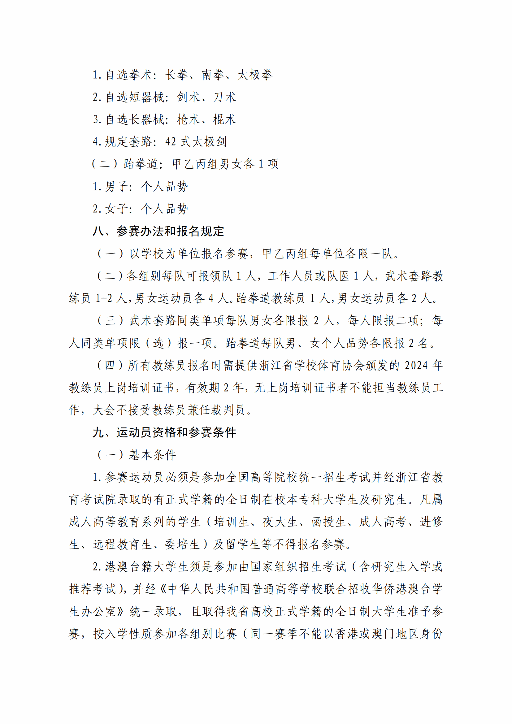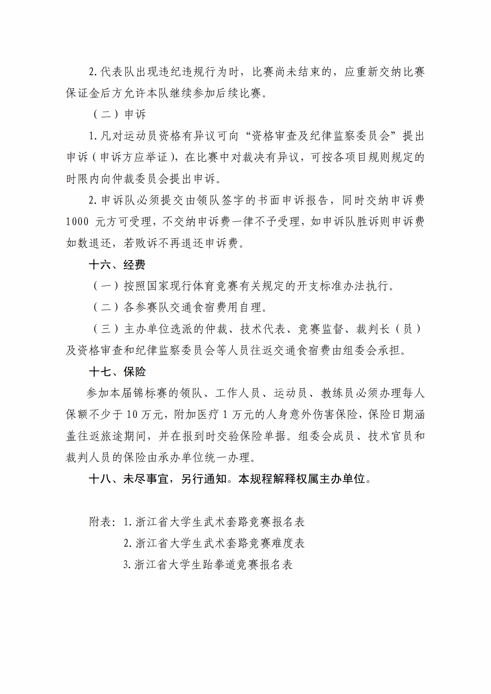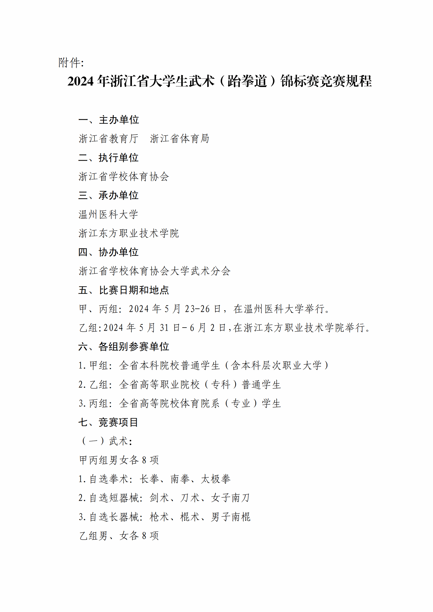 附件:浙江省大学生武术(跆拳道)锦标赛竞赛规程